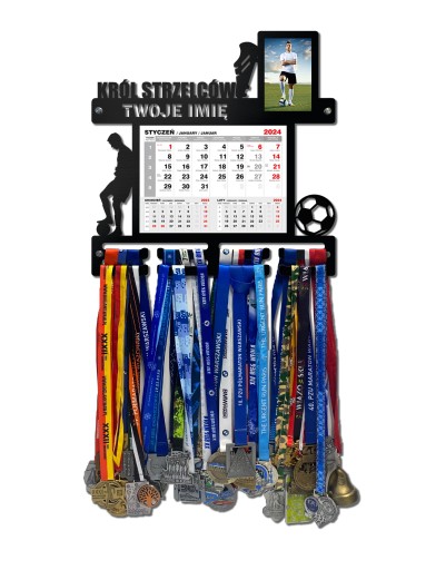 Вішалка для медалей ФУТБОЛЬНА з календарем, фоторамка, ім'я, 6 дизайнів