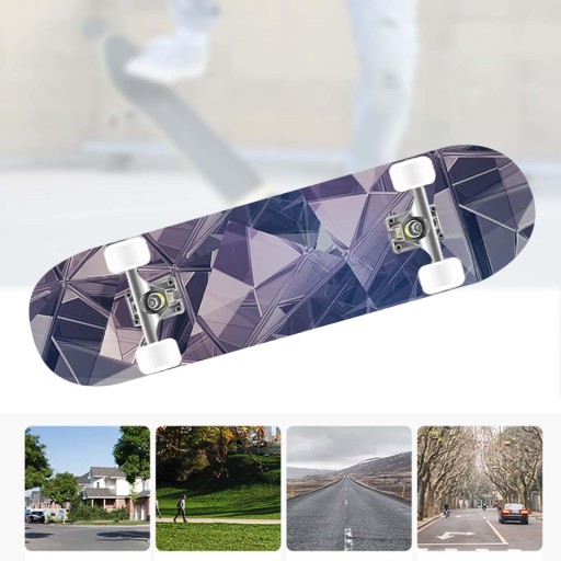 : Підлітковий скейтборд: Розмір: 80 см x 20 см x 10 см/31,50 дюйма x 7,87 дюйма x 3,94 дюйма, легкий у їзді, вантажопідйомність 150 кг, сильна ударостійкість. Підходить для хлопчиків і дівчаток або дорослих. Характеристики: Дизайн задньої частини використовує процес термотрансферного друку, передня частина - ПВХ протиковзкий чорний пісок (з хорошим антиковзаючим ефектом), колеса 85A PU, тихі, стабільні та безпечні. Ідеальний контроль: цей скейтборд ідеально підходить для початківців, щоб виконувати елементарну акробатику та інші трюки, що полегшує його навчання та задоволення від тренувань. Плавна швидкість катання та легка зупинка: скейтборд підходить для скейтерів, які катаються на вулиці, рампі, басейні та інших гладких поверхнях, навіть на нерівній поверхні. ІДЕАЛЬНИЙ ПОДАРУНОК: подарунок для тих, хто любить кататися на скейтборді.