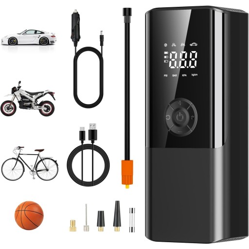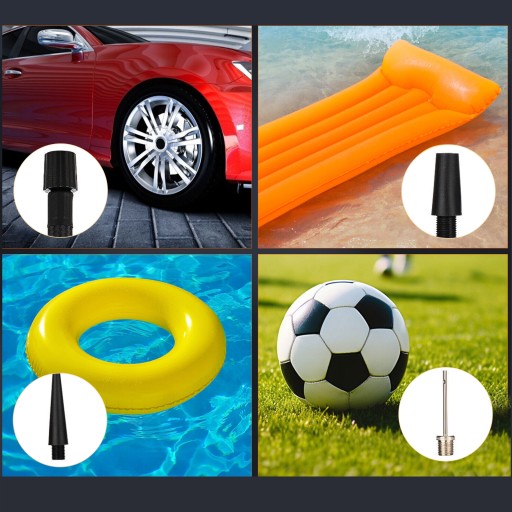 - Поставляється з 1 кульковою голкою, 2 повітряними насадками та 1 французькою насадкою для накачування, що робить його ідеальним інструментом для накачування велосипедів, мотоциклів, автомобілів, м'ячів, плавальних кілець.