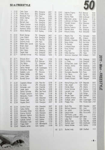 : Це типове статистичне дослідження Януша Васько, яке представляє список 100 найкращих результатів у світовому плаванні на кожній жіночій та чоловічій дистанції та в естафетах на довгих дистанціях у 2011-2020 роках. Книга має чіткий макет, у якому представлено досягнення найкращих чоловіків і жінок у кожній довгій дистанції рік за роком. Серед багатьох імен є також гравці з Польщі. Рейтинг був підготовлений автором на основі інформації та результатів, опублікованих на офіційному сайті Всесвітньої федерації плавання (FINA).