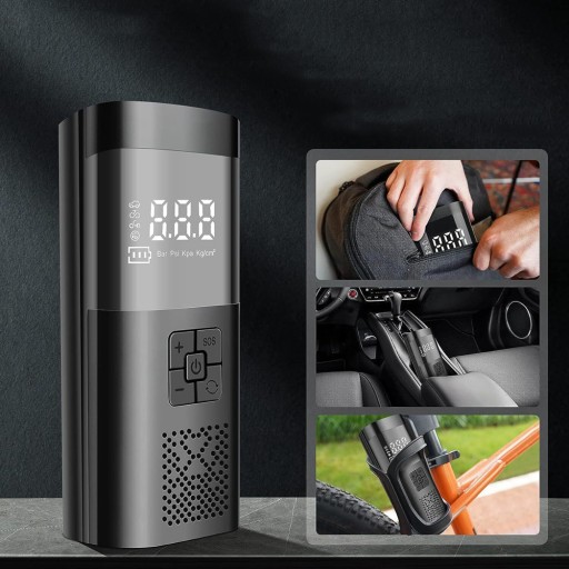 - Функція: Портативна повітряна насадка / Подвійний цифровий дисплей / Світлодіодне освітлення / Заряджання однією кнопкою / Зупинка / Висока потужність / Довгий час автономної роботи / Підтримка заряджання мобільного телефону
