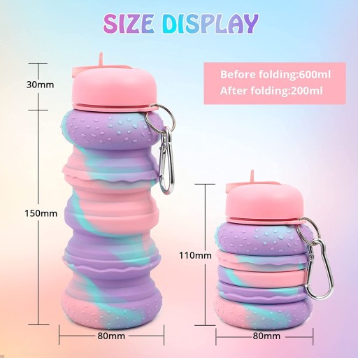 Портативний брелок: складна пляшка з водою має металевий брелок, її легко носити або повісити на рюкзак дитини. Дитина також може легко скласти його і покласти герметичність пляшки з водою в рюкзак.