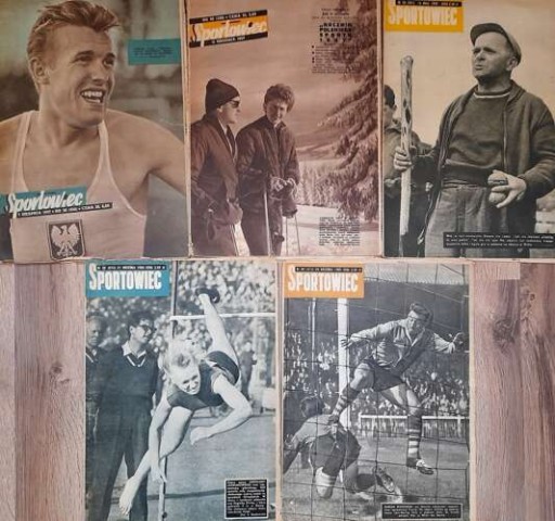 : Набір із 5 номерів популярного ілюстрованого журналу «Sportowiec» за 1957-1960 рр. Набір включає номери 32 і 50 1957 року, 20 1959 року та 39 і 40 1960 року. Окремі номери включають, серед іншого: репортажі з різних змагань з легкої атлетики, з тренувального збору збірної Польщі з боксу під керівництвом Фелікса Штамма, підсумок 1957 року в польській легкій атлетиці та футболі.