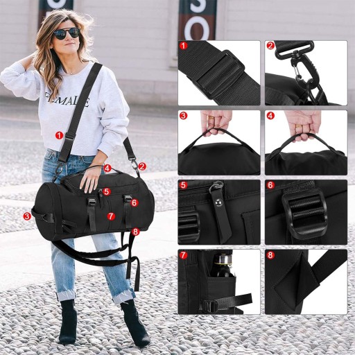 ✅【Велика ємність】: Розмір дорожньої сумки: 46 x 25 x 25 см / 18,1 x 9,8 x 9,8 дюймів (вимірювання вручну, допускається похибка розміру 1-3 см). Кілька кишень, місткий внутрішній простір, вміщає 1-2 дні коротких поїздок або основні речі, необхідні для щоденних занять спортом, фітнесу тощо.