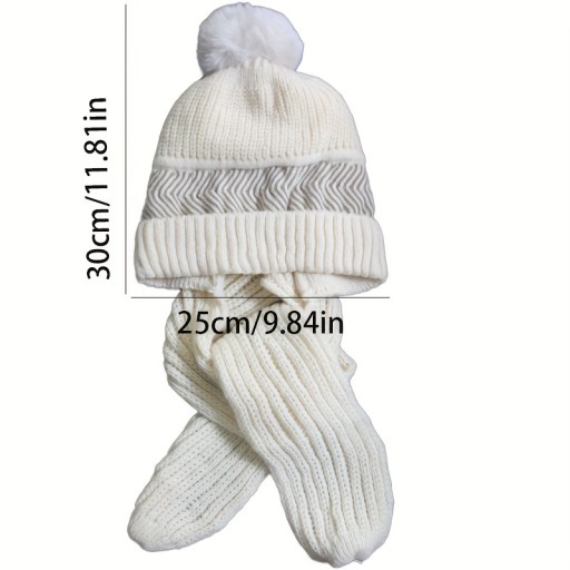 1 шт. Шапка 3 в 1 з шарфом - м'яка зручна шапка-біні з термоманжетом і помпоном.