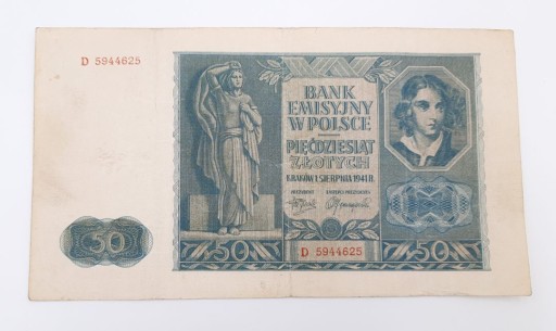 Стара колекційна банкнота Польща 50 злотих 1941 р