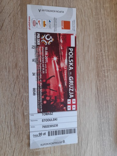 Колекційний квиток Польща - Грузія 2011р