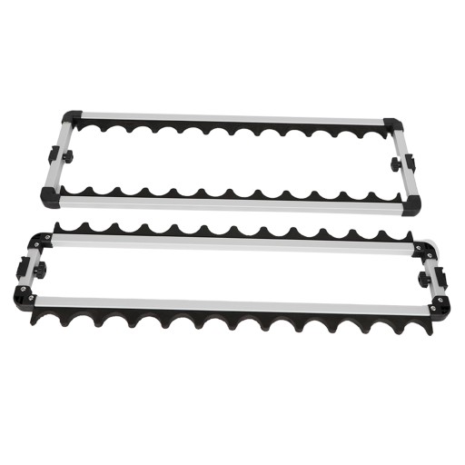 Десять стійок для вудок виготовлені з високоякісного алюмінієвого сплаву, який є красивим, міцним, довговічним і легким. Підставка вміщує до 24 вудок, завдяки оснащенню для риболовлі вона завжди під рукою і не займає багато місця. Мають захисні канавки, які запобігають базовому подряпину стрижнів і основного елемента. Це подарунок для всіх рибалок!