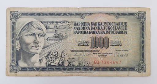 Стара колекційна банкнота 1000 динарів 1981 року Югославія