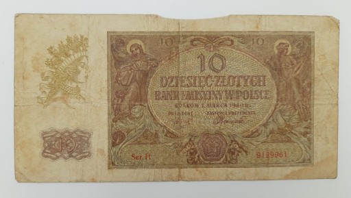 Стара колекційна банкнота Польща 10 злотих 1940 р