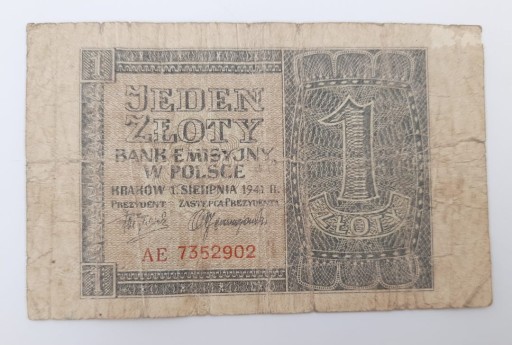Стара колекційна банкнота Польща 1 злотий 1941 р