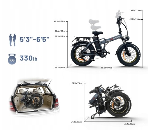 Ця міська електрична гребна машина виготовлена з алюмінієвої рами з регульованими кермом і висотою сидіння для додаткових чудових вражень від їзди. Складана конструкція дозволяє легко перевозити його в багажнику автомобіля. Електричний гірський велосипед оснащений високоякісними шинами 20 x 4,0 дюйма для туристичних поїздок, їзди по снігу, піску та бездоріжжю.