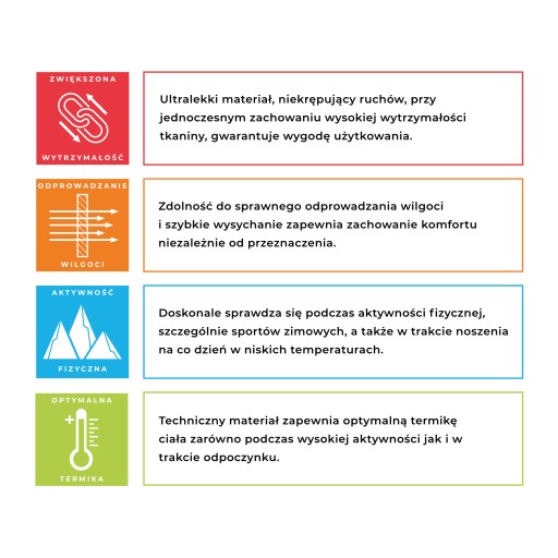 Комплект термобілизни був комплексно розроблений з акцентом на ваш комфорт. Гнучкі, приталені крої гарантують свободу рухів, дозволяючи насолоджуватися активним відпочинком на свіжому повітрі без будь-яких обмежень.
