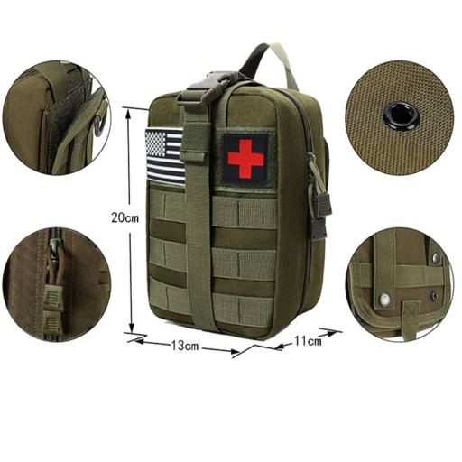 ⭐ Ця аптечка оснащена системою MOLLE, тобто її можна прикріпити до рюкзаків, жилетів і ременів. Крім того, він має вентиляційний отвір в основі, який допомагає зберегти вміст свіжим.