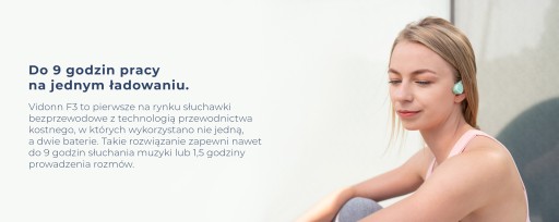 Vidonn F3 - це інноваційні бездротові навушники з технологією кісткової провідності. Завдяки своїй незвичайній структурі вони ідеально підходять людям, які хочуть забезпечити найвищий рівень безпеки під час розмов, прослуховування музики чи улюблених подкастів і при цьому бути в курсі того, що відбувається навколо них. Модель пропонує чудову якість звуку, яка виділяється серед інших кістяних навушників. Завдяки використанню 2 батарей Vidonn F3 вони забезпечують до 9 годин роботи на одному заряді. Навушники важать лише 25 грамів і стійкі до поту, вологи та бризок, що робить їх ідеальними для людей, які активно займаються спортом.