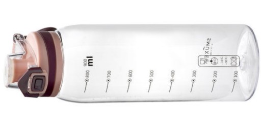 Пляшка для води з мірним стаканом. Прозорий. Силіконовий затискач з фіксатором відкриття.
