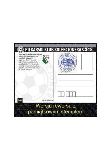 За бажанням на реверсі листівки ставимо пам’ятну марку: «Збірник видавництв історії спорту». Просимо чітко вказати, чи потрібно ставити марку на зворотному боці листівки.