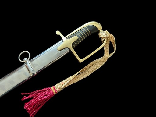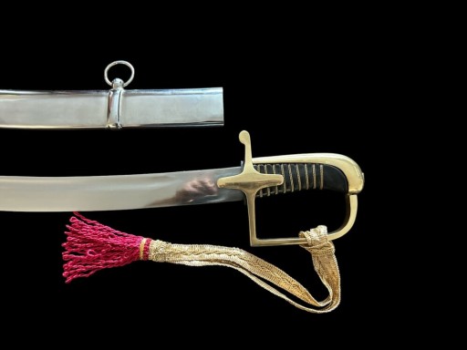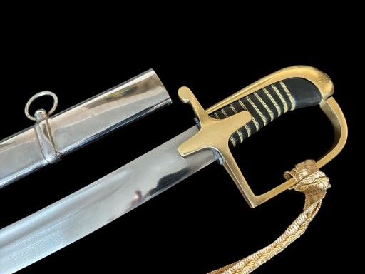 Шабля має відмінні технічні параметри. Ручка повністю закрита. Стрижень ручки обтягнутий чорною шкірою і переплетений золотою ниткою. Капот і поперечина також золота мають гладку поверхню без будь-яких прикрас. Заднє плече хрестовини має форму сльози. Обидві сторони леза гладкі. Вістря увінчане двостороннім пір’яним лезом.