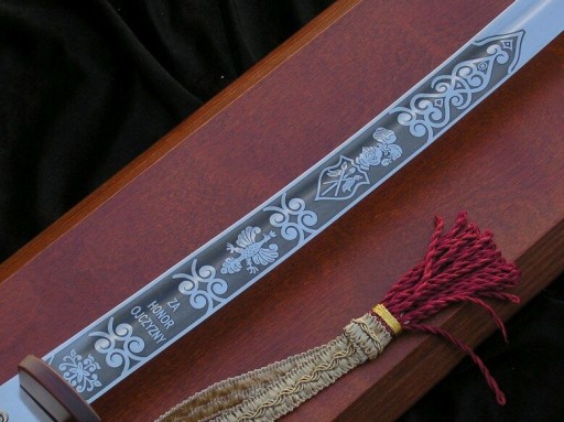 Для цієї шаблі характерне плоске лезо з однолезовим лезом. Одна сторона клинка багато прикрашена орнаментом, зокрема гербовим щитом під шоломом і польським орлом у короні. Нижче викарбувано напис «ЗА ЧЕСТЬ ВІТЧИЗНИ». Друга сторона леза залишалася гладкою.