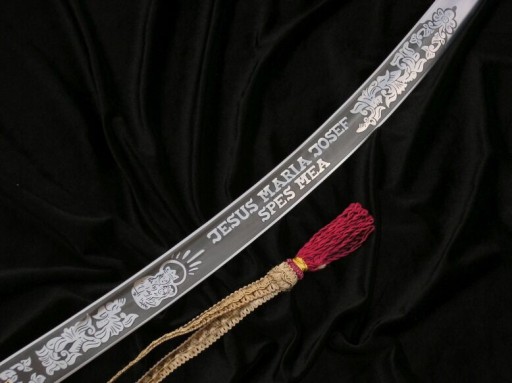 На представленій репліці з одного боку клинка вигравірувано напис «JESUS MARIA JOSEF SPES MEA», а з іншого — «HUSSARIA». Виготовлена з високоякісної толеданської сталі.