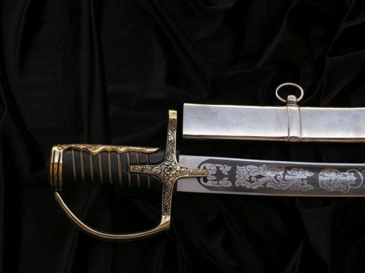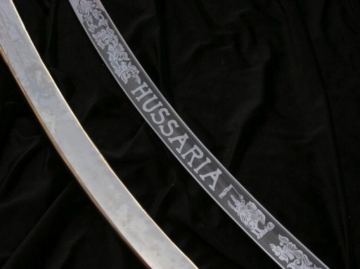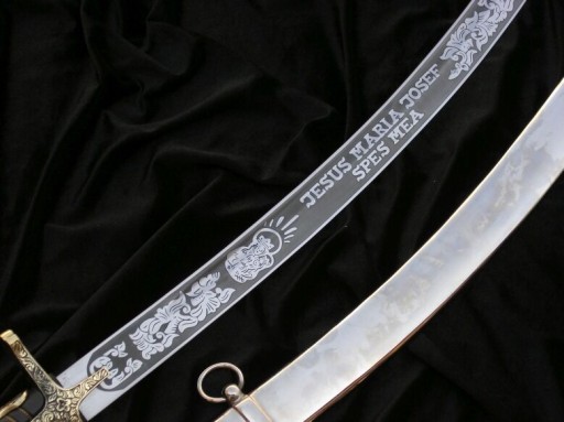 На одній стороні клинка вигравірувано напис «HUSSARIA», а на іншій «ISUS MARIA JOSEF SPES MEA».