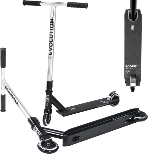 Самокати серії RAVEN Evolution створювалися як високопродуктивні моделі, призначені для вільного катання. Використання відповідних алюмінієвих сплавів і сталі дозволило забезпечити надзвичайну жорсткість і довговічність конструкції при збереженні невеликої ваги. Кермо з вуглецевої сталі дозволяє вільно виконувати різні, навіть найскладніші, трюки, включаючи повороти на 360 градусів. Використання потрійного кріплення кільця керма забезпечує дуже динамічну та агресивну їзду.