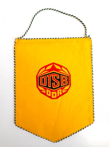 Стан: ДОБРЕ: Виготовлений з матеріалу, вимпел спортивного клубу BSG Fortschritt Lautex Zittau, випущений за часів НДР, в якій гандбол був провідним видом спорту. На першій стороні розміщено герб клубу, а на другій – логотип організації DTSB (Deutscher Turn- und Sportbund), яка діяла в період НДР і об’єднувала спортивні клуби та асоціації Східної Німеччини.