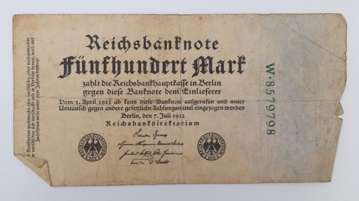 Стара колекційна банкнота 500 марок Німеччини 1922 року
