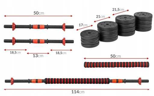 - 2 х штанги 50 см/26 мм (гумова рукоятка - 13 см, вагова частина 2x18,5 см)