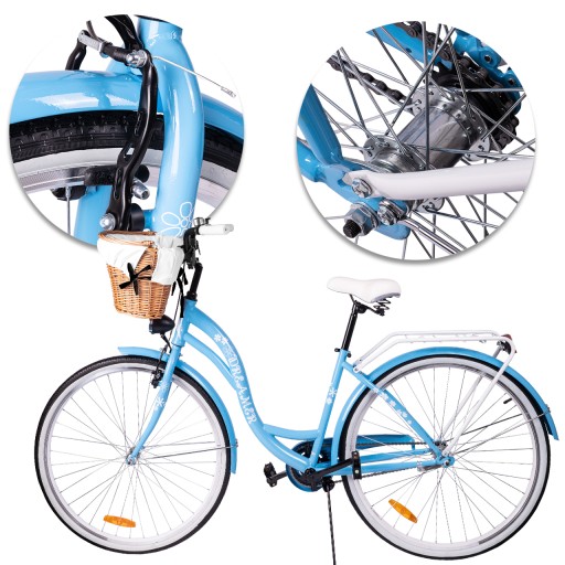 ЖІНОЧИЙ МІСЬКИЙ ВЕЛОСИПЕД 28'' ЖІНОЧИЙ БАГАЖНИК, НІЖКА, ПЛЕТЕНА КОРЗИНА, БРИЗКОВИКИ
