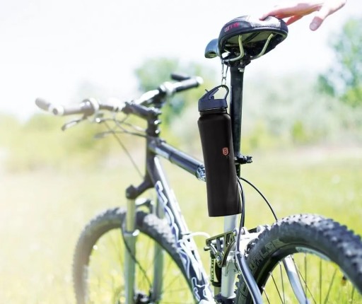 - Карабін, що входить в комплект, дозволяє прикріпити його до рюкзака або штанів під час подорожі.