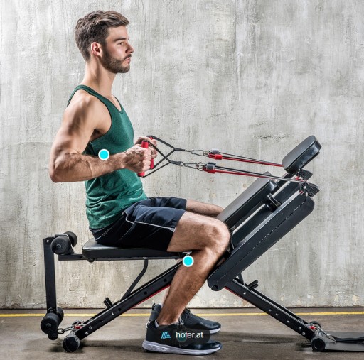 Фітнес-обладнання можна відрегулювати відповідно до вашого росту та рівня фізичної підготовки. Наприклад, у випадку з гумками можна вибрати один із трьох рівнів опору. Для більшого комфорту під час силових тренувань багатофункціональний мультитренажер оснащений 3-ступеневим регулюванням висоти підголівника.