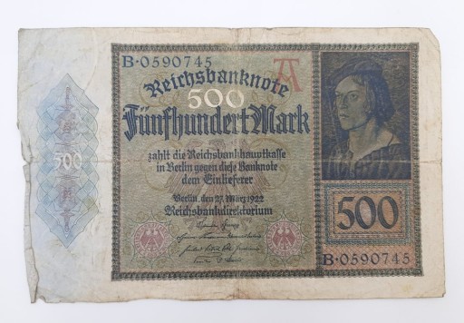Стара колекційна банкнота 500 марок Німеччини 1922 року
