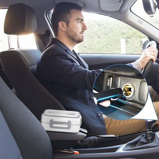 🍱 Цей ланч-бокс для підігріву їжі має дві розетки, одну на 220 В для дому чи офісу, а іншу на 12 В/24 В для легкових і легких вантажівок.