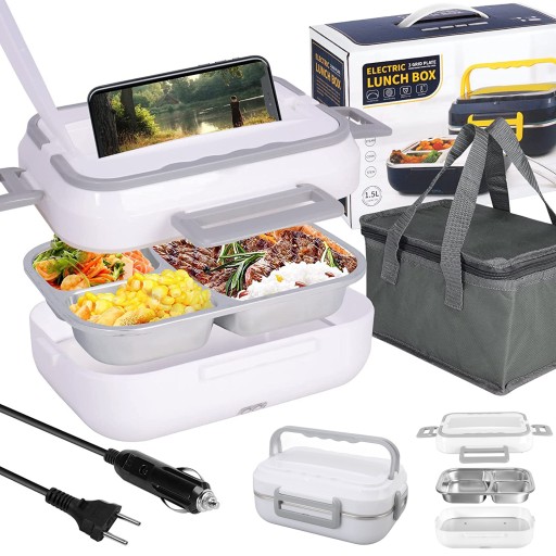 🍱 Ця електрична ланч-бокс-підігрівач їжі ущільнена високоякісним силіконом, щоб запобігти переливанню соку. Ці контейнери для обіду з підігрівом для дорослих мають 1,5-літровий спліт-контейнер великої місткості.