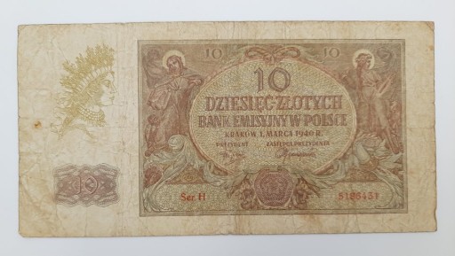 Стара колекційна банкнота Польща 10 злотих 1940 р