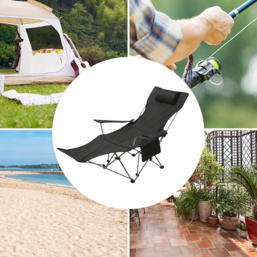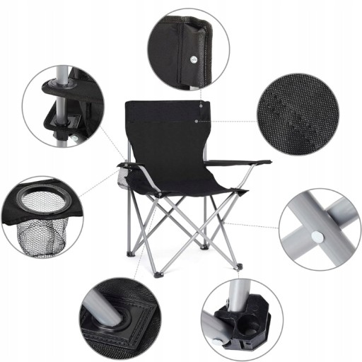 Кемпінговий стілець Domidekor розкладний зі спинкою, чорний