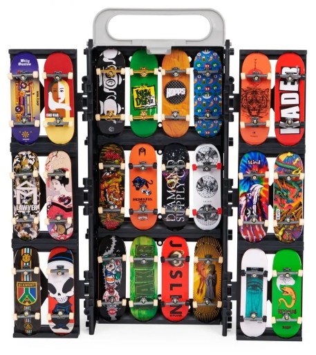 Підніміться в повітря з Tech Deck, дивовижними грифами з автентичною графікою від справжніх скейтборд-компаній! Play and Display Box — ідеальний спосіб зберігати вашу колекцію міні-скейтбордів. Якщо вам захочеться покататися, коробка перетворюється на рампу, щоб ви могли вивчати та відпрацьовувати нові трюки. Він може вмістити до 24 грифів (кожний продається окремо) і допоможе вам брати їх із собою куди завгодно. Навіть якщо ви не рухатимете дошки, ви можете перетворити пакет на рампу та грати на рейках. Катайтеся по рампі з додаванням ексклюзивного скейтборду Element. Комплекти Fingerboard Tech Deck і Ramp Kit призначені для дітей і любителів скейтбордингу віком від 6 років. Почніть з маленьких дощок, переходьте до великих і збирайте їх усі!