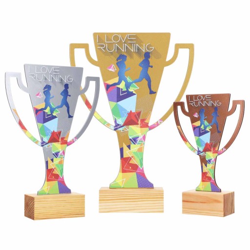 На медалі зображено зображення бігунів на абстрактному тлі та напис: I LOVE RUNNING.
