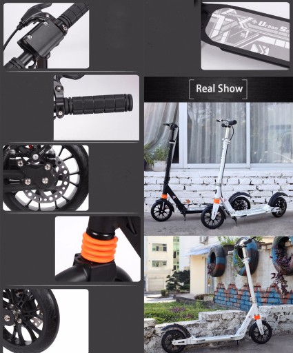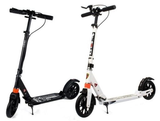 Великий і міцний 2-колісний самокат з дисковим гальмом і амортизаторами, призначений для дітей і дорослих.