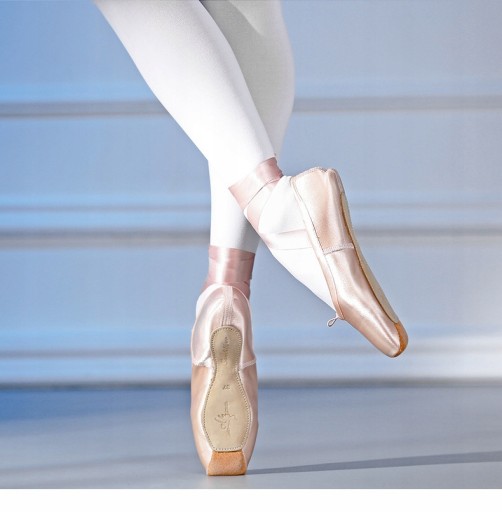 Жорсткі пуанти, злегка завужені, шкіряний носок у формі еліпса, довгий вамп, підкладка та підкладка з бавовняної тканини. Завдяки використовуваним матеріалам пуанти виглядають красиво, а шкіряні пальці забезпечують міцність і стабільність в положенні на пуантах.
