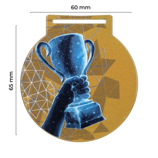 Медаль має універсальне зображення руки, що тримає чашку, на абстрактному тлі.