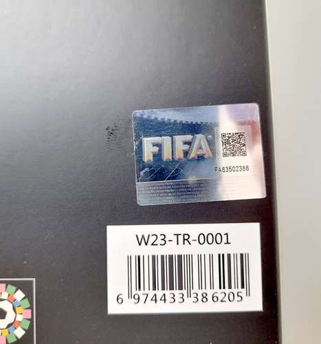 Стан: ДУЖЕ ХОРОШИЙ новий продукт, упакований: виготовлений з металу та пластику, поміщений у красивий футляр із картону та пластику, копія кубка Чемпіонату світу з футболу серед жінок у Австралії та Новій Зеландії 2023 року (AU, NZ 2023). Це офіційний сувенір, виданий ФІФА та організаторами турніру, про що свідчить, серед іншого, підпис на нижній частині підставки та голограма на корпусі.