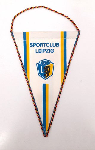 Стан: ДУЖЕ ДОБРЕ: Двосторонній, виготовлений з матеріалу, вимпел німецького клубу SC Leipzig, який був найуспішнішим за часів існування Німецької Демократичної Республіки. Хоча у нього була футбольна команда, він досяг більшого в гандболі (чоловіки - 3 рази чемпіони НДР; жінки - 2 рази Кубок європейських чемпіонів, 13 разів чемпіони НДР) і волейболі (чоловіки - 1 раз Кубок європейських чемпіонів, 19 разів чемпіонка НДР (жінки) - 3-разова чемпіонка НДР). Крім того, клуб одного разу виграв чемпіонат Східної Німеччини з хокею. На першому боці вимпелу на тлі його кольорів розміщено емблему та назву клубу, а на другому – герб НДР на тлі кольорів державного прапора.