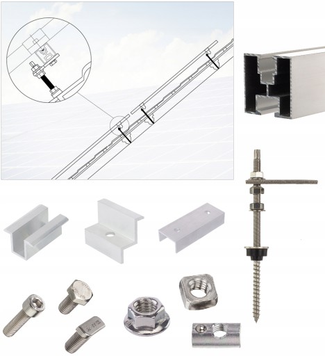 Продукт був адаптований для кріплення структурних елементів до фотоелектричних панелей, які використовуються, серед іншого, для монтажу монтажних рейок на адаптерах, кріпленнях на даху або трикутних кронштейнах. Гвинт слід використовувати з фланцевою гайкою М10.
