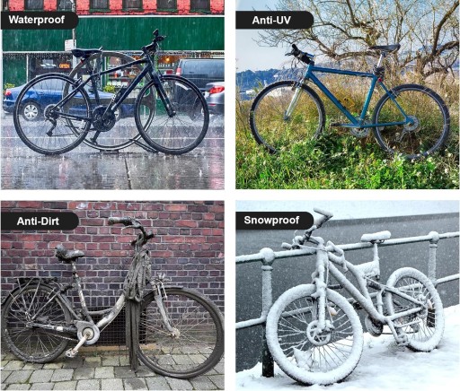 - Захист найвищого рівня: спеціальний матеріал захищає велосипед від пилу, бруду, сонця, дощу, снігу, ультрафіолетового випромінювання та забруднення.