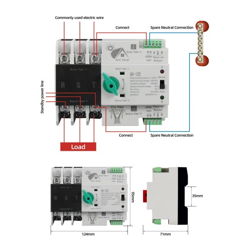 Підходить для змінного струму 50/60 Гц, електричного струму 400 В, номінальний струм нижче 100 А (2-провідний) - провід під напругою, нейтральний провід, подвійне джерело живлення тощо. Звичайним джерелом живлення є міське джерело живлення або ДБЖ, а резервним джерелом живлення може бути міський генератор, сонячна енергія, інвертор та ДБЖ. Доступ можливий лише за допомогою загальнодоступних засобів або генераторів.