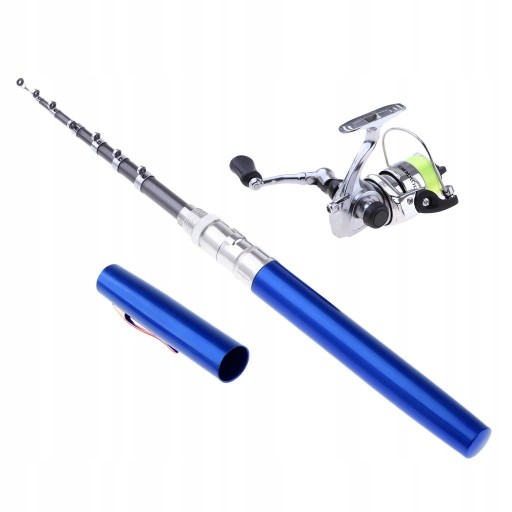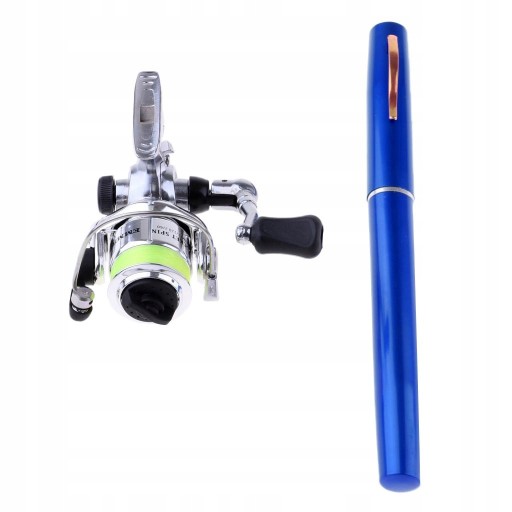 Міні-портативна вудка з алюмінієвого сплаву та котушка у формі ручки для риби синього кольору