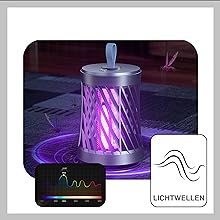 спеціально протестоване світлодіодне світло UltraViolett (довжина світлової хвилі 365 нм) ефективно приваблює комарів, міль та інших комах. Як тільки вони наближаються до діапазону високої напруги, вони ефективно вбиваються репелентом від комарів за допомогою електричного розряду 3000 В.