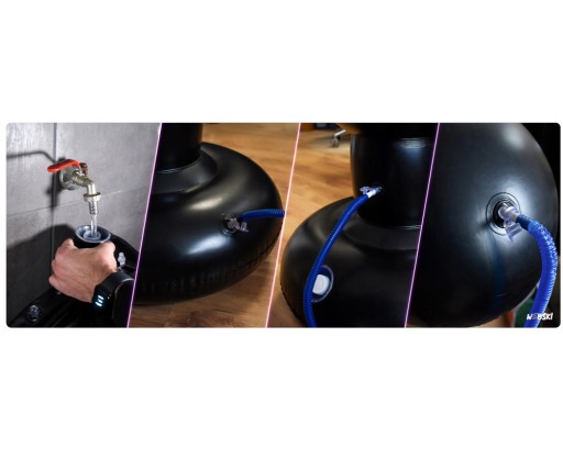 Наповнений повітрям боксерський мішок дуже легкий і реагує на будь-який удар, але зважена водою основа стабілізує його на місці. Кожен удар приводить сумку в рух, повітря всередині швидко повертає сумку у вертикальне положення!